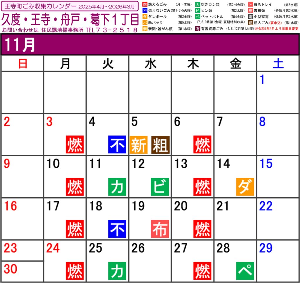 2025年11月度ごみ収集カレンダー ごみ分別ガイドブック 2022 ごみ分別ガイドブックー_2022年度 2023年度 廃品回収予定表 ごみ排出ルール ゴミ出しは、ルールを守って気持ちよく 王寺町ホームページより引用 王寺町ホームページより引用 王寺町ホームページより引用 王寺町ホームページより引用 王寺町ホームページより引用 王寺町ホームページより引用