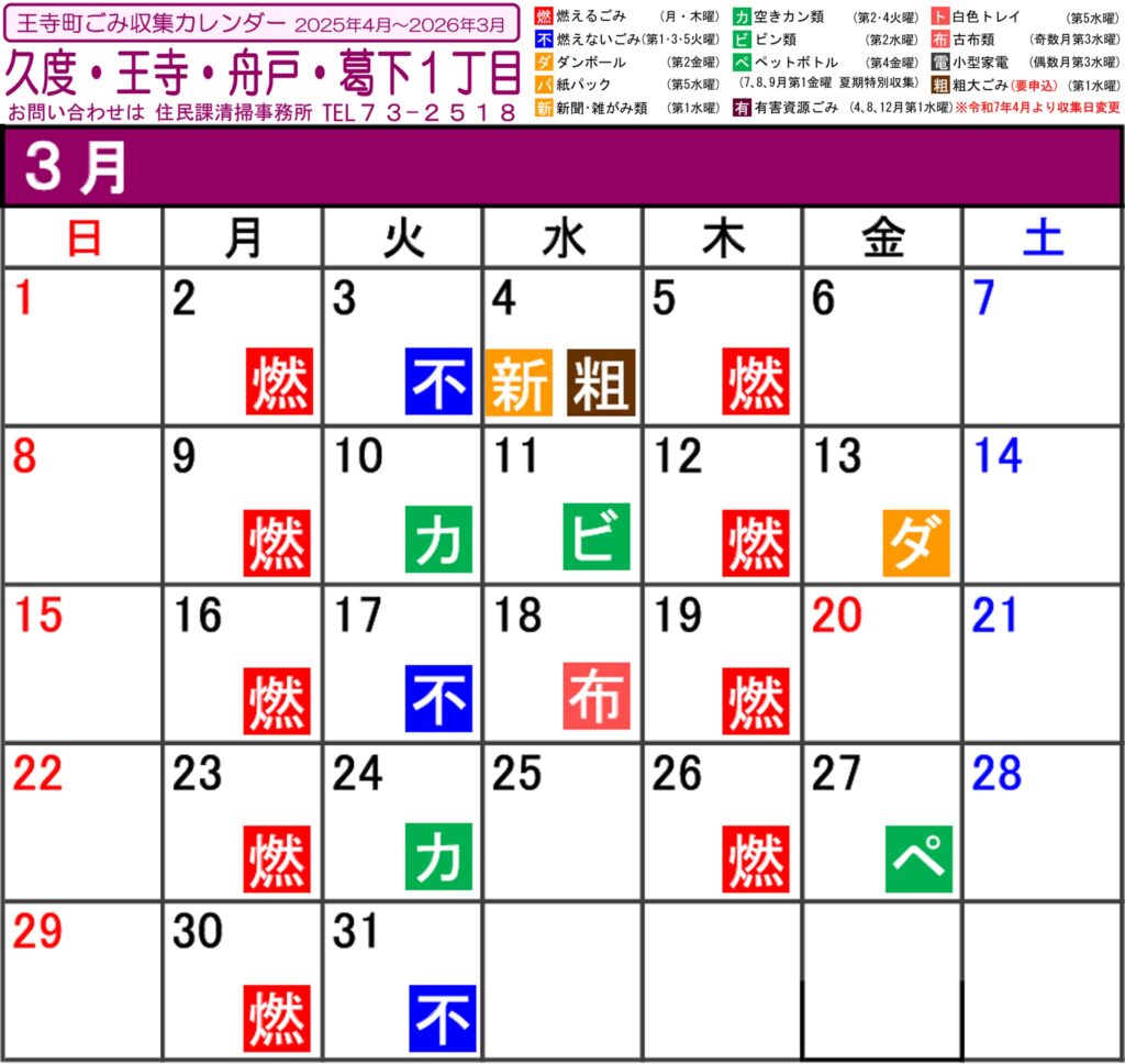 2026年3月度ごみ収集カレンダー ごみ分別ガイドブック 2022 ごみ分別ガイドブックー_2022年度 2023年度 廃品回収予定表 ごみ排出ルール ゴミ出しは、ルールを守って気持ちよく 王寺町ホームページより引用 王寺町ホームページより引用 王寺町ホームページより引用 王寺町ホームページより引用 王寺町ホームページより引用 王寺町ホームページより引用